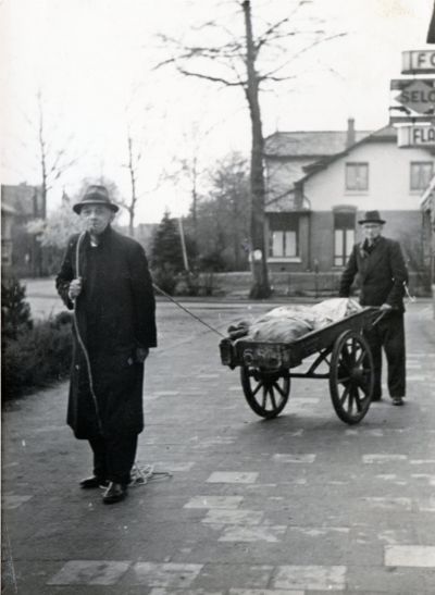 Ook verschillende winkeliers als melkboer namen hun koopwaar mee op een handkar.