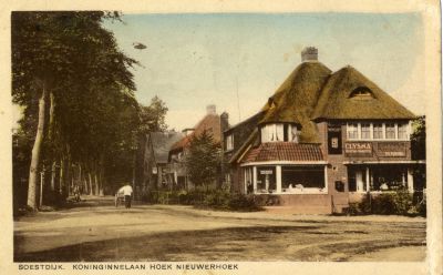 Waarschijnlijk is een van hen volgens hem Walter van Meel, de schoonzoon van de heer Flapper getrouwd met een van zijn dochters. De heer Flapper had een zaak op de hoek met de Koninginnelaan waar sigaren, wijn en alcoholische dranken werden verkocht en waar ook foto’s konden worden ontwikkeld. Een deel van de reclameborden zijn op de foto nog zichtbaar.