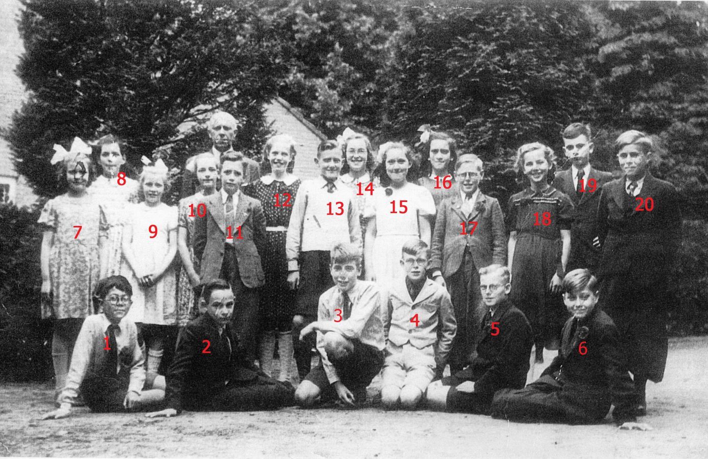De kinderen op de foto moeten toen zo’n 12 jaar oud zijn geweest. Aanleiding voor het maken van de foto was de verjaardag van meester Nijhuis op 1 juli.